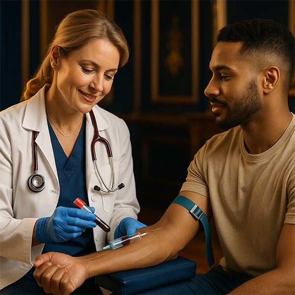 Royal Doctor Home Healthcare offers safe and reliable at-home blood testing services across Dubai. Our licensed medical technicians collect samples following strict hygiene and international diagnostic standards. Results are processed by DHA-approved labs to ensure accuracy and timely reporting.